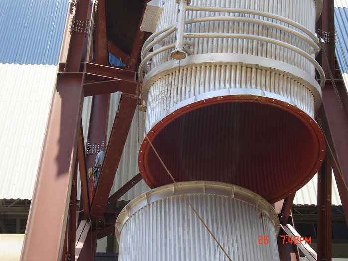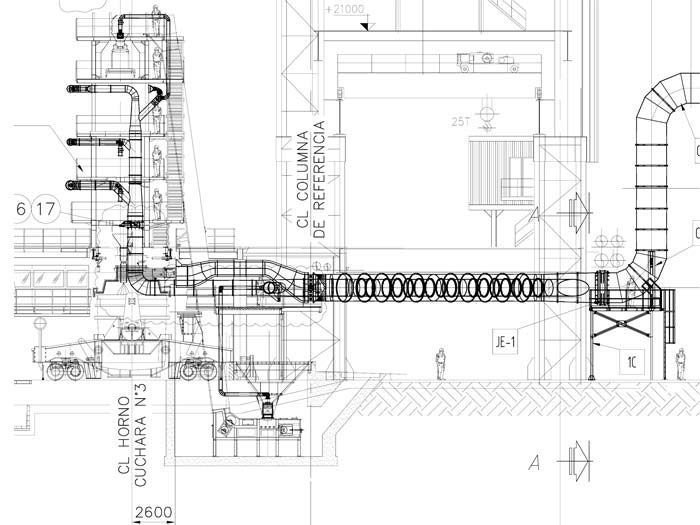 Proyecto remodelación completa del sistema de desempolvado de gases y/o emisiones, nueva torre de acondicionamiento, ciclón, conductos, chimenea, estructuras soporte, fundaciones, cálculos de cargas, sismo, viento, ingenierías de detalle y montaje.